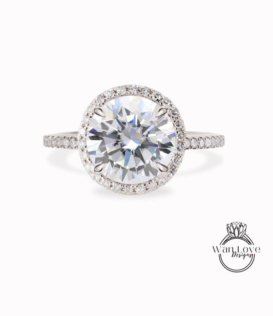 Round shaped Lab Diamond engagement ring Art deco IGI Certified Diamond halo ring prong vintage wedding Bridal promise Anniversary ring