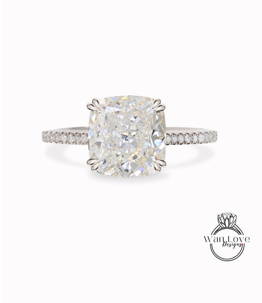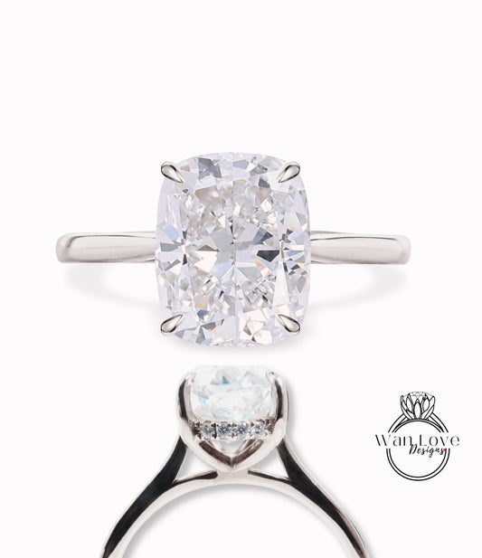 Diamond Elongated Cushion engagement ring white gold Lab Diamond ring prong vintage solitaire Unique wedding Bridal Promise Anniversary ring