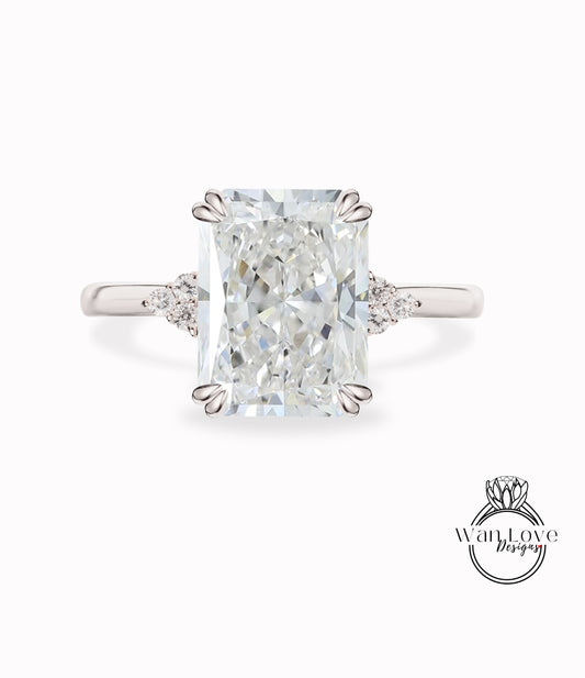 Diamond Cluster Radiant cut engagement ring Tapered plain band Lab Diamond Emerald ring rose gold prong ring Art deco wedding bridal Anniversary promise ring