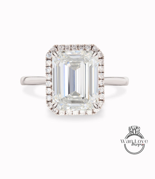 Diamond Emerald Halo Plain tapered Band engagement ring lab diamond halo ring rose gold prong ring Art deco Radiant IGI Diamond wedding bridal Anniversary promise