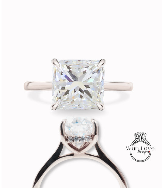 Diamond Princess side halo engagement ring hidden side halo ring rose gold prong ring Art deco Solitaire IGI Diamond wedding bridal Anniversary gift