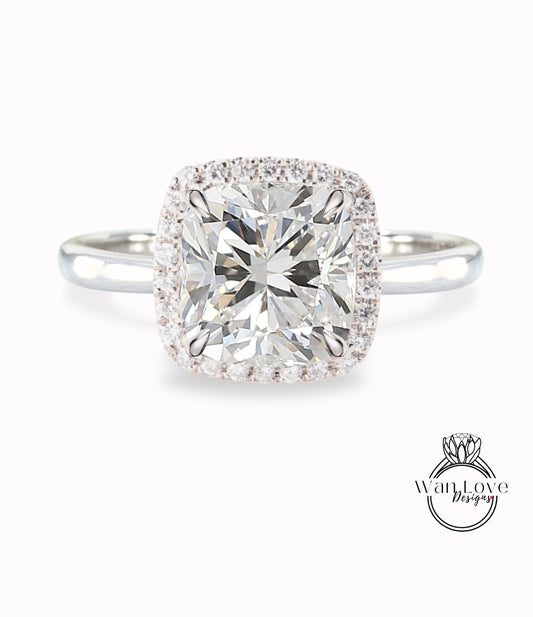 Cushion cut Diamond engagement ring rose gold halo ring lab diamond halo tapered plain thin dainty band art deco anniversary gift