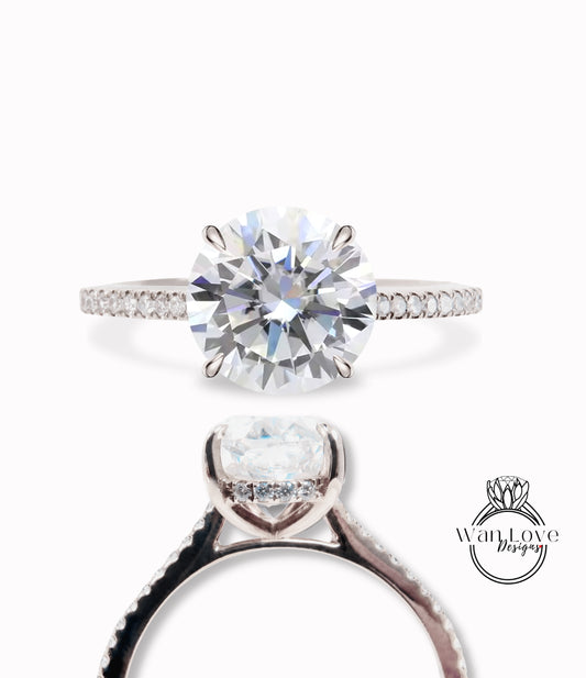 Diamond Side Halo Round cut Half Eternity Halfway Engagement Ring, Basket Cathedral, 14k 18k Gold-Platinum-Custom made IGI Lab Diamond ring-Bridal Wedding ring-Anniversary Gift