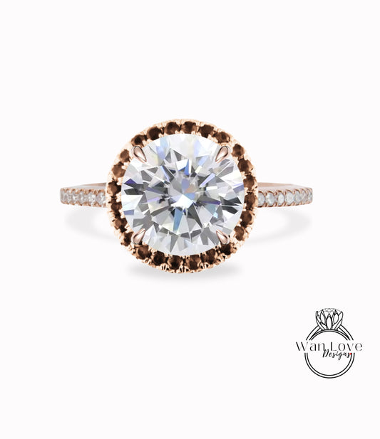 Black & White Diamond Round Halo Engagement Ring Certified Diamond 14k 18k White Yellow Rose Gold-Platinum-Custom-Bridal Wedding ring Anniversary gift