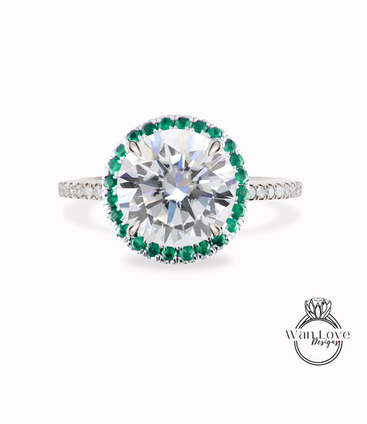 Diamond & Emerald Round Halo Engagement Ring Certified Diamond 14k 18k White Yellow Rose Gold-Platinum-Custom-Bridal Wedding ring Anniversary gift