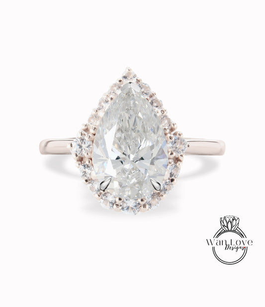Pear Halo Diamond engagement ring Certified Pear cut diamond ring half eternity vintage art deco rose gold ring anniversary promise ring