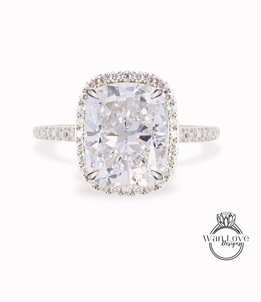 Elongated Cushion cut Diamond engagement ring gold vintage IGI diamond halo engagement ring women Half eternity wedding Bridal Anniversary