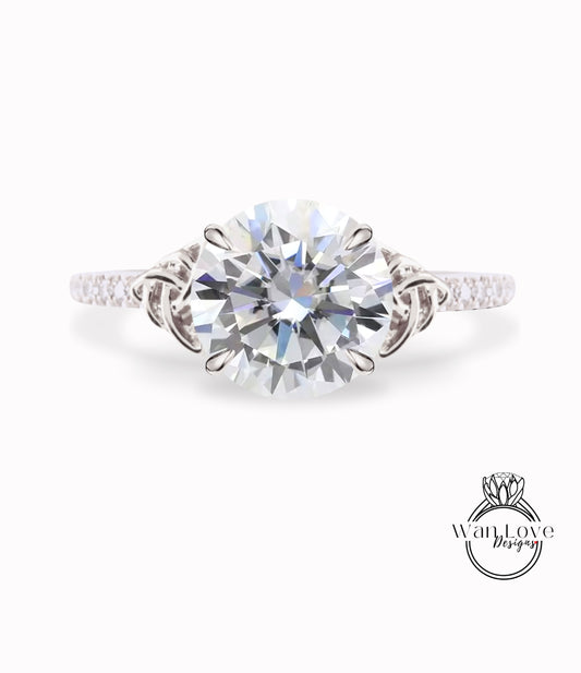 Diamond Celtic Knot Round Engagement Ring, Custom, 14k 18k White Yellow Rose Gold, Platinum-Wedding-Anniversary Gift
