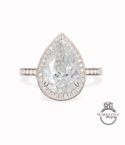 Vintage pear Diamond engagement ring Lab diamond milgrain halo art deco rose gold bridal ring Antique Anniversary promise wedding ring