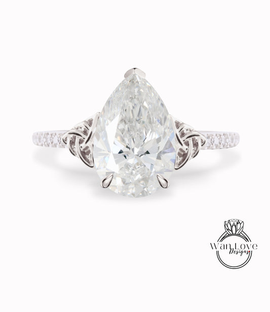 Pear Lab Diamond engagement ring vintage Celtic Knot IGI Diamond ring White gold wedding ring women Celtic Bridal Jewelry Anniversary gift