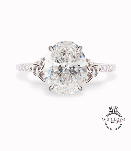 Oval cut Lab Diamond engagement ring vintage Celtic Knot IGI Diamond ring rose gold engagement ring women Bridal Jewelry Anniversary gift