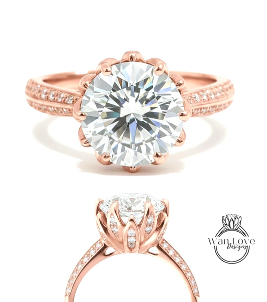 2.00CT Lotus Flower Round Diamond Cut 14K 18K/Diamond Engagement ring/Round Flower Diamond Ring/proposal ring/Wedding gift/Rose White gold