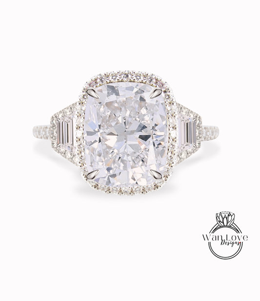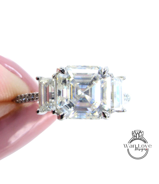 Diamond 3 stone Asscher Baguette Engagement Ring 14k 18k White Yellow Rose Gold Custom Princess wedding bridal ring Anniversary Gift