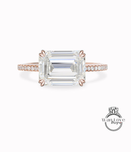 Emerald cut East West Diamond engagement ring antique rose gold Emerald cut lab diamond ring art deco unique proposal anniversary bridal ring
