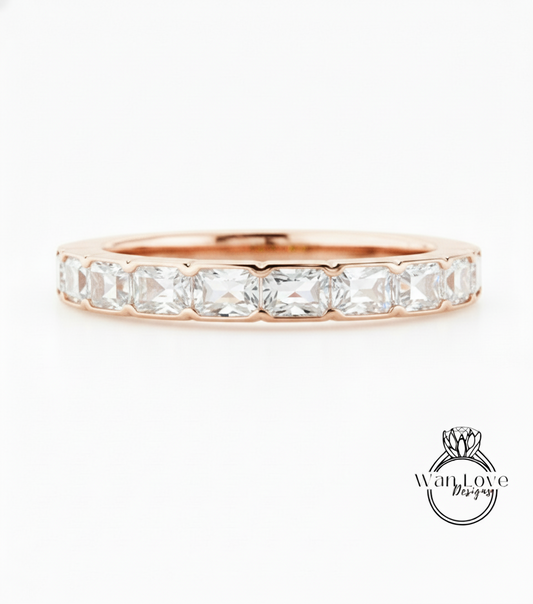 Emerald cut East West Ring in Gold โข Baguette Moissanite Eternity Band โข WITH OR WITHOUT Milgrain Ring โข Wedding Ring โข Bold Stacking Ring