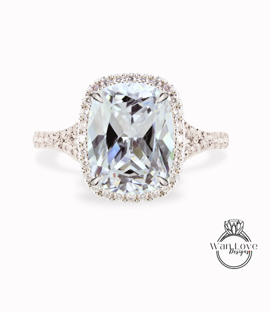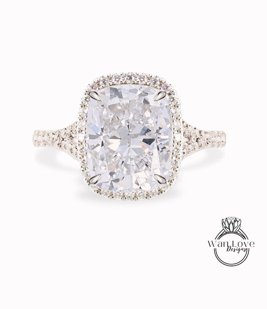 Antique Cushion cut Moissanite & Diamond Elongated Cushion Halo Split Shank Ring Engagement Ring Art Deco split band Halo Ring Wedding bridal ring Anniversary gift