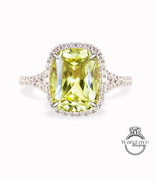 Yellow Sapphire & Diamond Elongated Cushion Halo Split Shank Ring Engagement Ring Art Deco split band Halo Ring Wedding bridal ring Anniversary gift