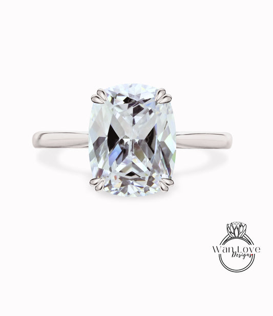 Moissanite & Diamonds Elongated Cushion Double Prong Solitaire Engagement Ring Half Eternity Custom Bridal Wedding Anniversary Gift 14kt 18kt Gold, Platinum