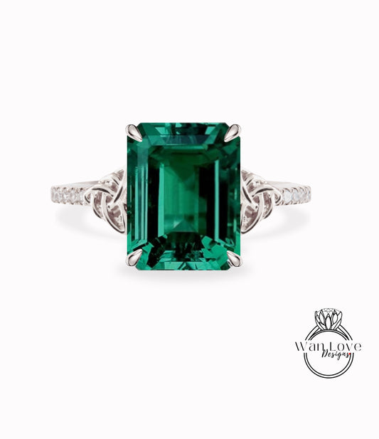 Celtic Emerald engagement ring rose gold Emerald cut diamond Celtic knot wedding ring Unique Bridal Promise Anniversary ring gift