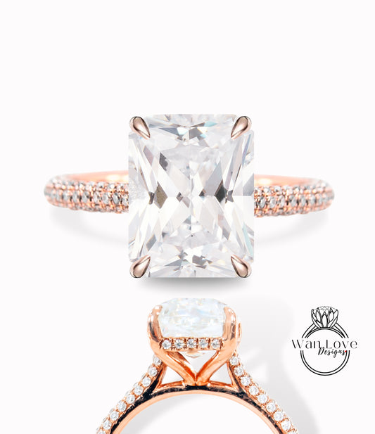 Diamond Emerald cut 3 sided Band Celebrity Style Engagement Ring Custom 14k 18k White Yellow Rose Gold Platinum Wedding Anniversary Bridal Gift