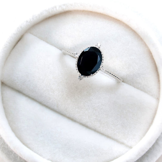 Oval cut Black Spinel engagement ring vintage engagement ring for women Half eternity Diamond / Moissanite Bridal Anniversary gift