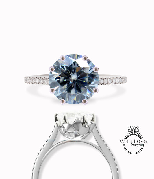 Gray Moissanite & Diamond Flower 8 Prong Engagement Ring Round Floral Plumeria 14k 18k White Yellow Rose Gold Platinum, Anniversary Gift