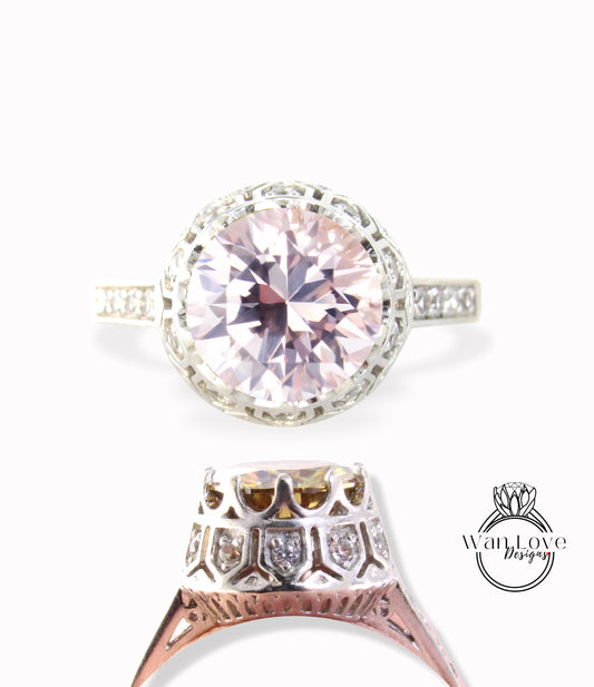 Light Pink Sapphire & Diamonds Antique Vintage Style Crown Royalty Filigree Engagement Ring 2ct 8mm Custom Wedding Anniversary Gift