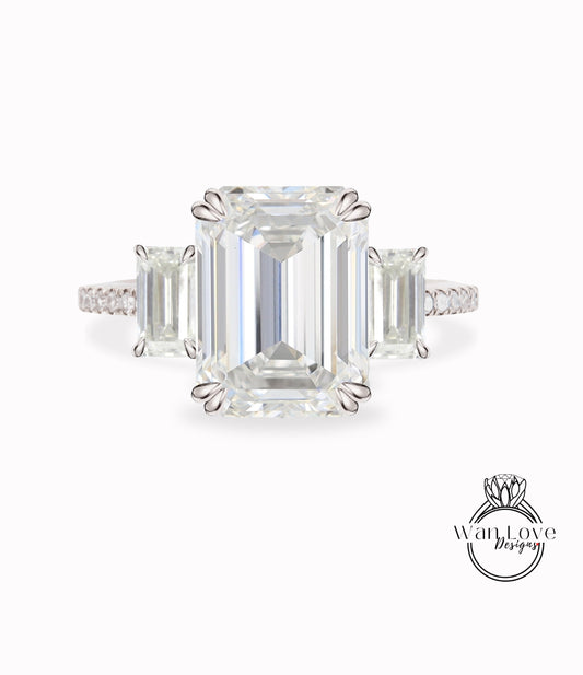 Diamond 3 stone Asscher Baguette Engagement Ring 14k 18k White Yellow Rose Gold Custom Princess wedding bridal ring Anniversary Gift