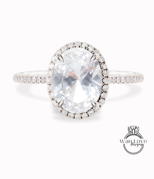 Oval cut White Sapphire engagement ring art deco ring halo moissanite/diamond ring vintage rose gold half eternity anniversary bridal ring