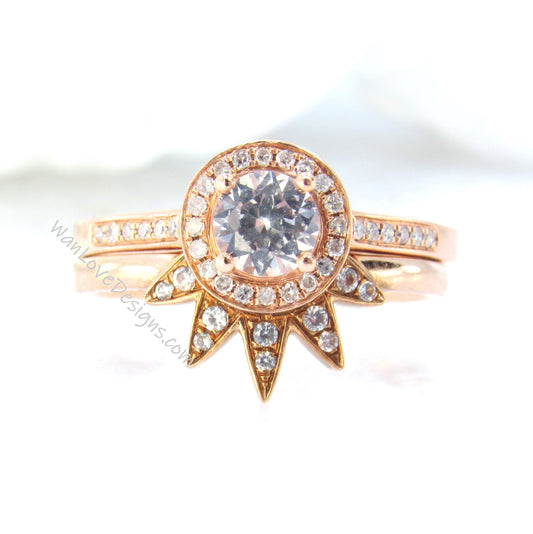 Rose Gold White Sapphire Round Cut Diamond Halo Engagement Ring, Round Diamond ring set, Sapphire Bridal ring set, Gift for her, Ready Ship