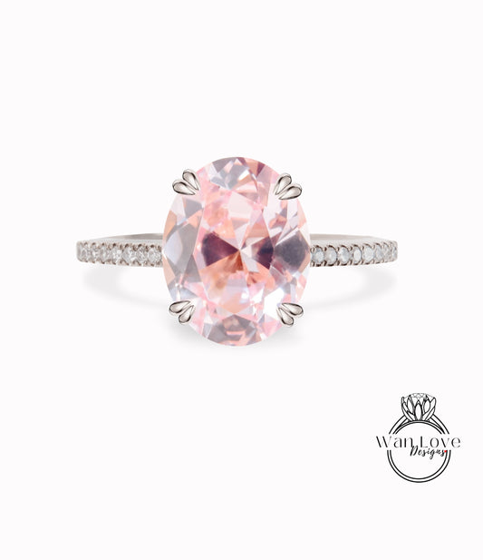 Peach Champagne Sapphire & Diamonds Oval WITH or WITHOUT Milgrain Engagement Wedding Rings, 14kt Solid Rose White Gold, WanLoveDesigns