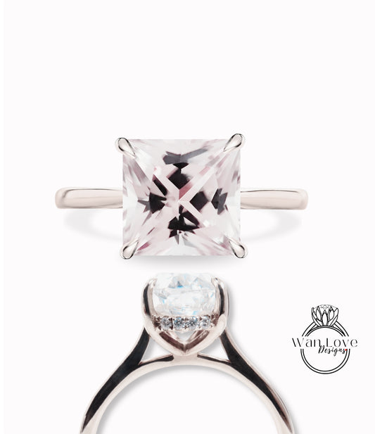 Light Pink Sapphire & Diamond Princess side halo plain band Engagement Ring, Cathedral Basket 14kt 18kt Gold-Platinum-Custom-Wedding, Anniversary Gift
