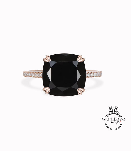 Black Moissanite & Diamond Cushion cut Engagement Ring Art Deco rose gold Cushion Ring wedding bridal promise Anniversary ring