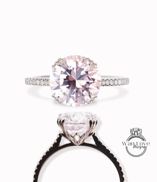 Light Pink Sapphire & Diamond Round 3 triple fishtail prongs Engagement Ring, 14k 18k White Yellow Rose Gold-Platinum-Custom-Wedding