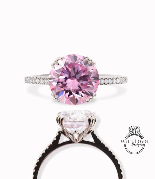 Pink Moissanite Diamond Engagement Ring 3 triple fishtail prongs ring half eternity ring diamond round Bridal Anniversary promise Ring gift