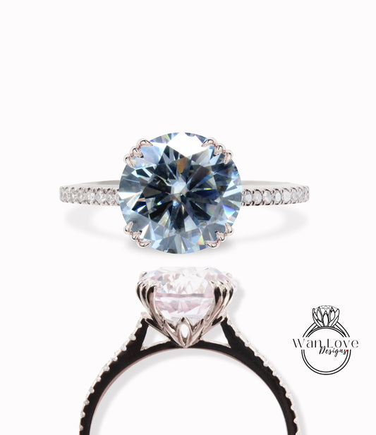 Gray Moissanite Diamond Engagement Ring 3 triple fishtail prongs ring half eternity ring diamond round Bridal Anniversary promise Ring gift