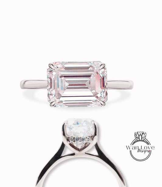 Light Pink Sapphire & Diamond engagement ring plain rose gold tapered band Unique east west Side Halo vintage engagement ring women diamond wedding Anniversary gift