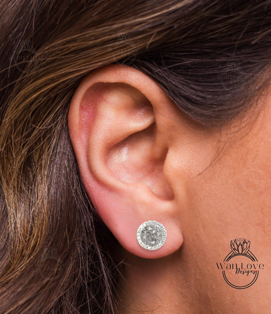 Salt & Pepper Diamond Earrings • Round Halo Diamond Stud Earrings in 14k 18k Gold • Salt pepper Galaxy Studs Earrings • Gift for Her