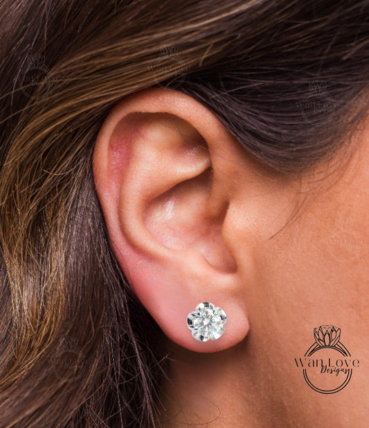 1 ct Each 2 ctw Round Buttercup Bridal Wedding Bridesmaid Earrings, Moissanite White Gold Earrings, Anniversary Gift, Ready to Ship
