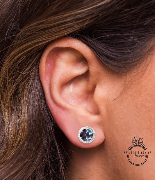 2ct Alexandrite Earrings, Diamond Halo Earrings, Alexandrite Studs, June Birthstone Earrings, Bridesmaid Earrings, Dainty Earrings, Gift Her