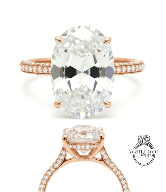 3CT Emerald Cut Moissanite Diamonds Ring, Hidden Halo Ring, Half Eternity Ring, Solid Rose Gold Engagement Ring, Anniversary Ring For Fiancé