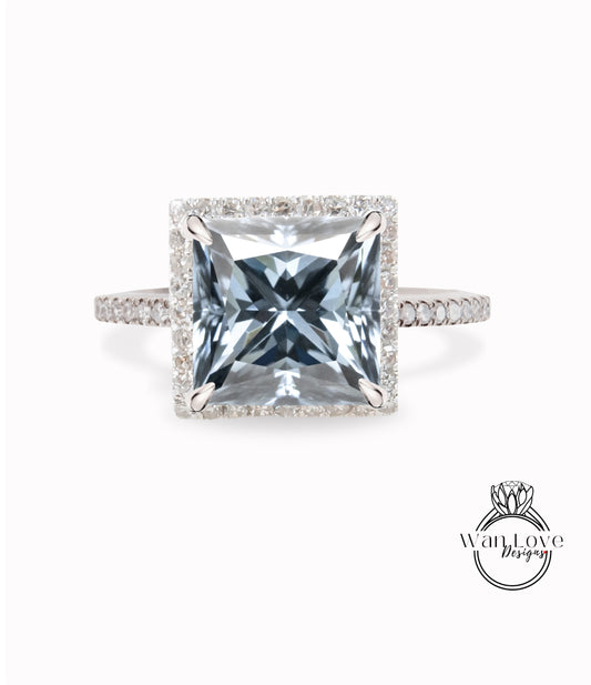 Art deco Princess Cut Grey Moissanite Engagement Ring white gold Antique diamond halo ring bridal ring Moissanite wedding Anniversary gift