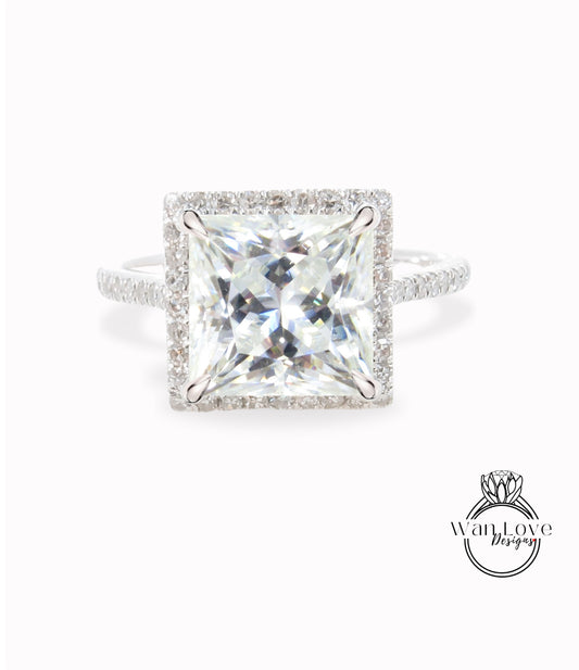 Art deco Princess Cut Moissanite halo Engagement Ring white gold Antique diamond halo ring bridal ring Moissanite wedding Anniversary gift