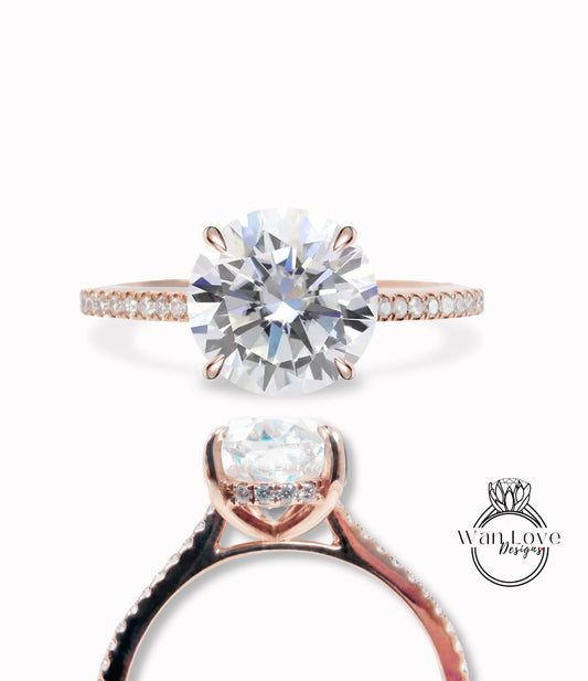 Moissanite & Diamond Side Halo Half Eternity Engagement Ring rose gold round ring art deco diamond halo ring wedding Bridal ring Anniversary Gift