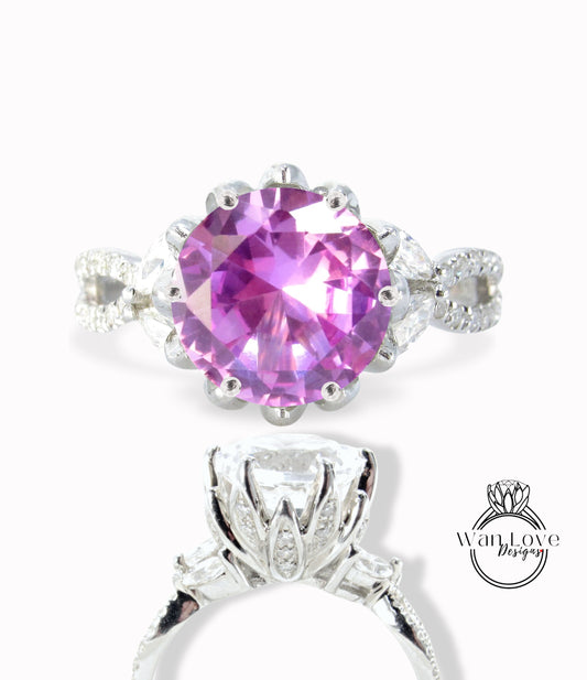 Pink Sapphire & Diamond Lotus Flower Engagement Ring Marquise Split Shank Leaf 14k 18k White Yellow Rose Gold-Platinum-Custom-Wedding