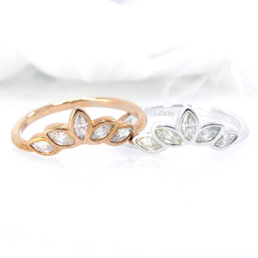 Birthstone Moissanite Bezel marquise Leaf Contoured Nesting Curved Wedding Band Sapphire White Blue Pink Ring Custom Anniversary Gift