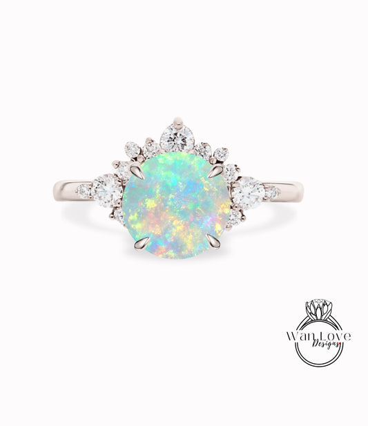 Opal Cluster Half Halo engagement ring Diamonds Unique cluster White Rose Gold Ring woman Promise Anniversary Gift