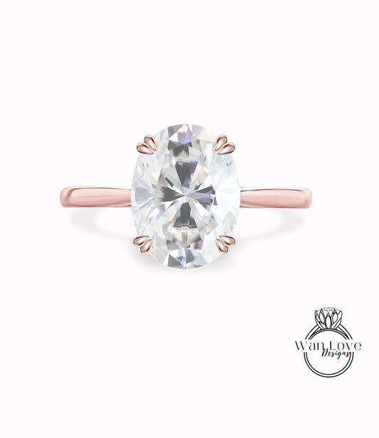 Custom Listing for Angel RUSH Oval cut Moissanite engagement ring Low Profile Solitaire tapered ring 14k gold ring moissanite ring gift