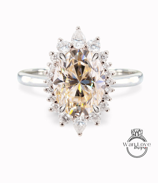 Champagne Moissanite & Diamond Oval Cluster Halo Engagement Ring, Rose Gold Bridal Wedding Ring, Anniversary Gift