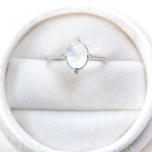 Moonstone & Diamond Oval Milgrain Engagement Ring 14k 18k White Yellow Rose Gold, Platinum, Custom, Wedding, North Star, WanLoveDesigns